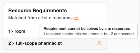 If warnings appear, review your resource requirements and ensure enough matching resources exist at your site. You may need to tag additional resources or create new ones.
