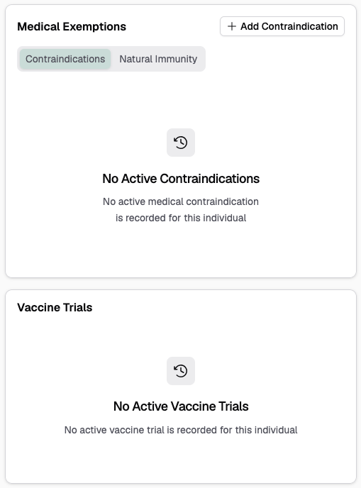 View contraindications, natural immunity, and vaccine trial records
