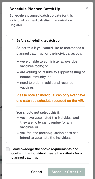 - Planning systematic completion of multiple overdue vaccinations